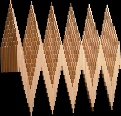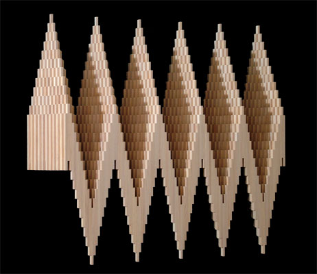 This piece is made from 1342 copies of a single unit shape, 132 in the bottom layer, and diminishing by