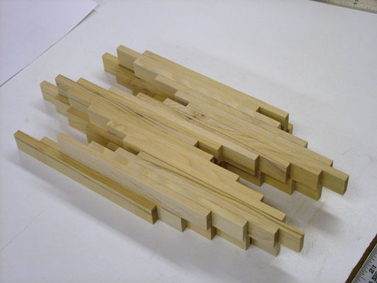 pieces were marked so it was easy to reposition any layer of wood that tumbled when being moved from stack to table.