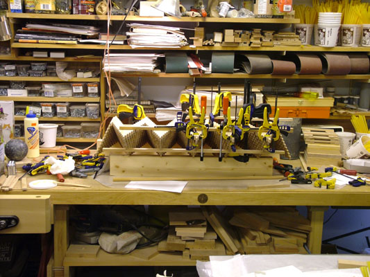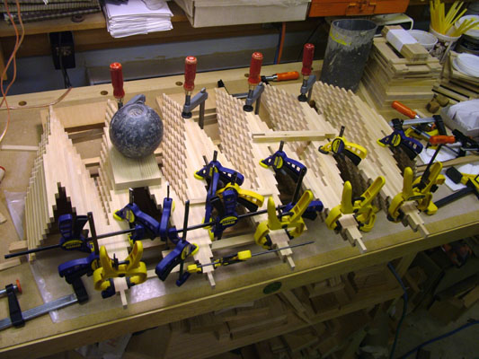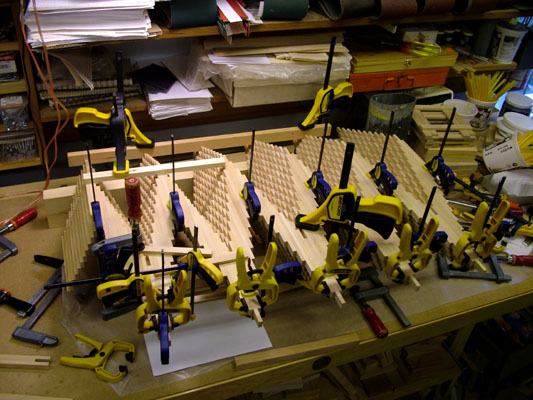 had to be clamped in place for each gluing. At the end there were four kinds of clamps needed. |