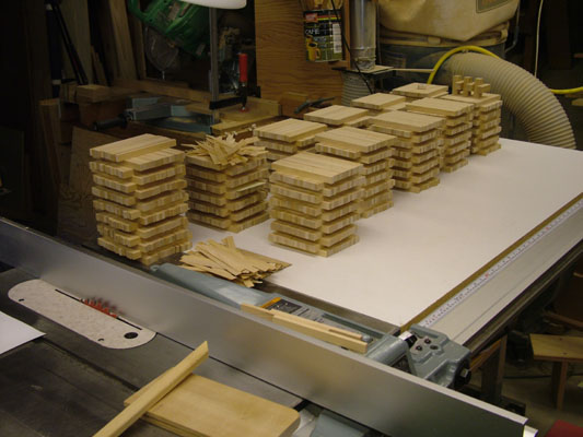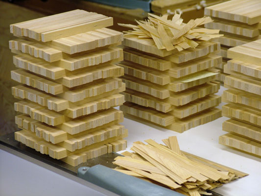 Before the next cut, each piece was placed against the tablesaw fence to be
