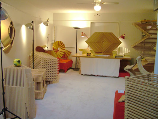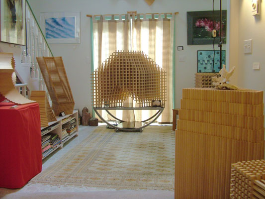 household moveable lights into the studio. "So Inclined" in the middle of the wall on the left is the newest sculpture.